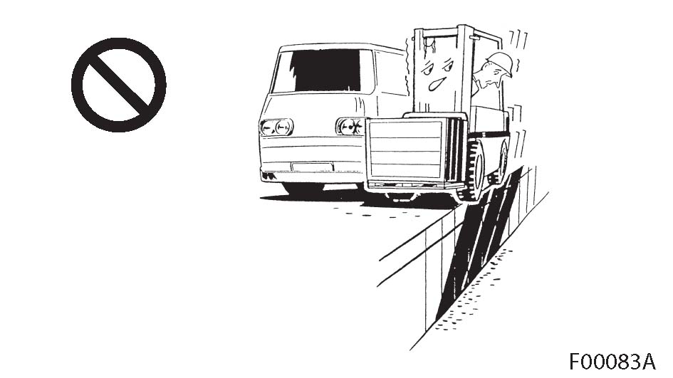 Always maintain a safe distance from the edge of docks, ramps, and platforms. The lift truck could drop off the edge if you get too close to the edge.