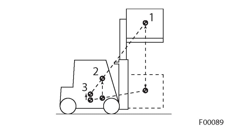 When the lift truck picks up a load, the lift truck and the load have a new, combined Center of Gravity (Figure 1).